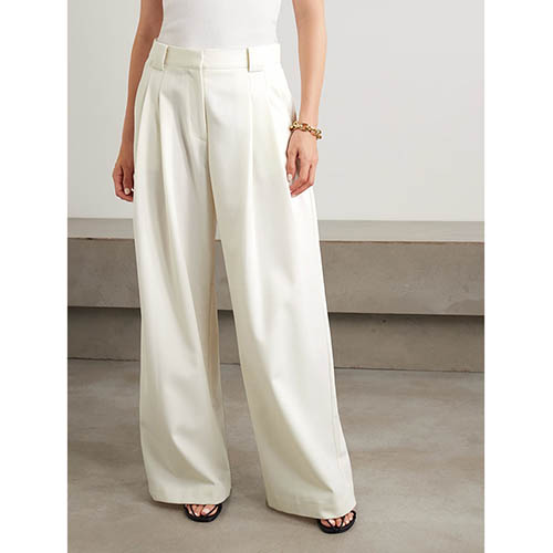 🌸 Incontra il tuo nuovo eroe del guardaroba: il completo blazer senza maniche color crema e pantaloni a gamba larga