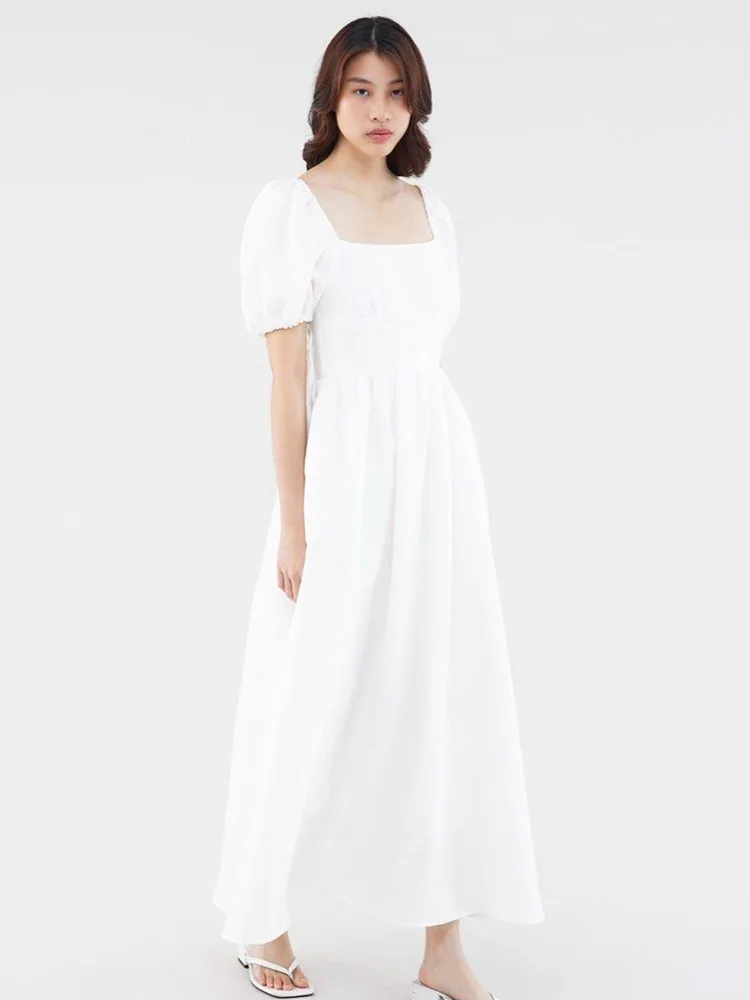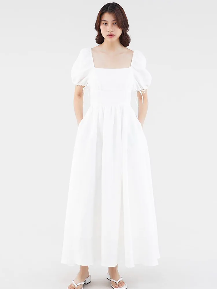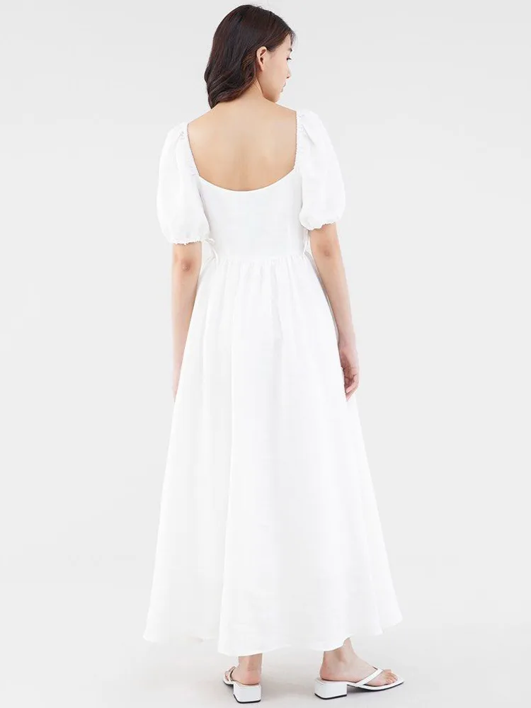 Caratteristiche della moda del maxi abito in lino e cotone a maniche corte